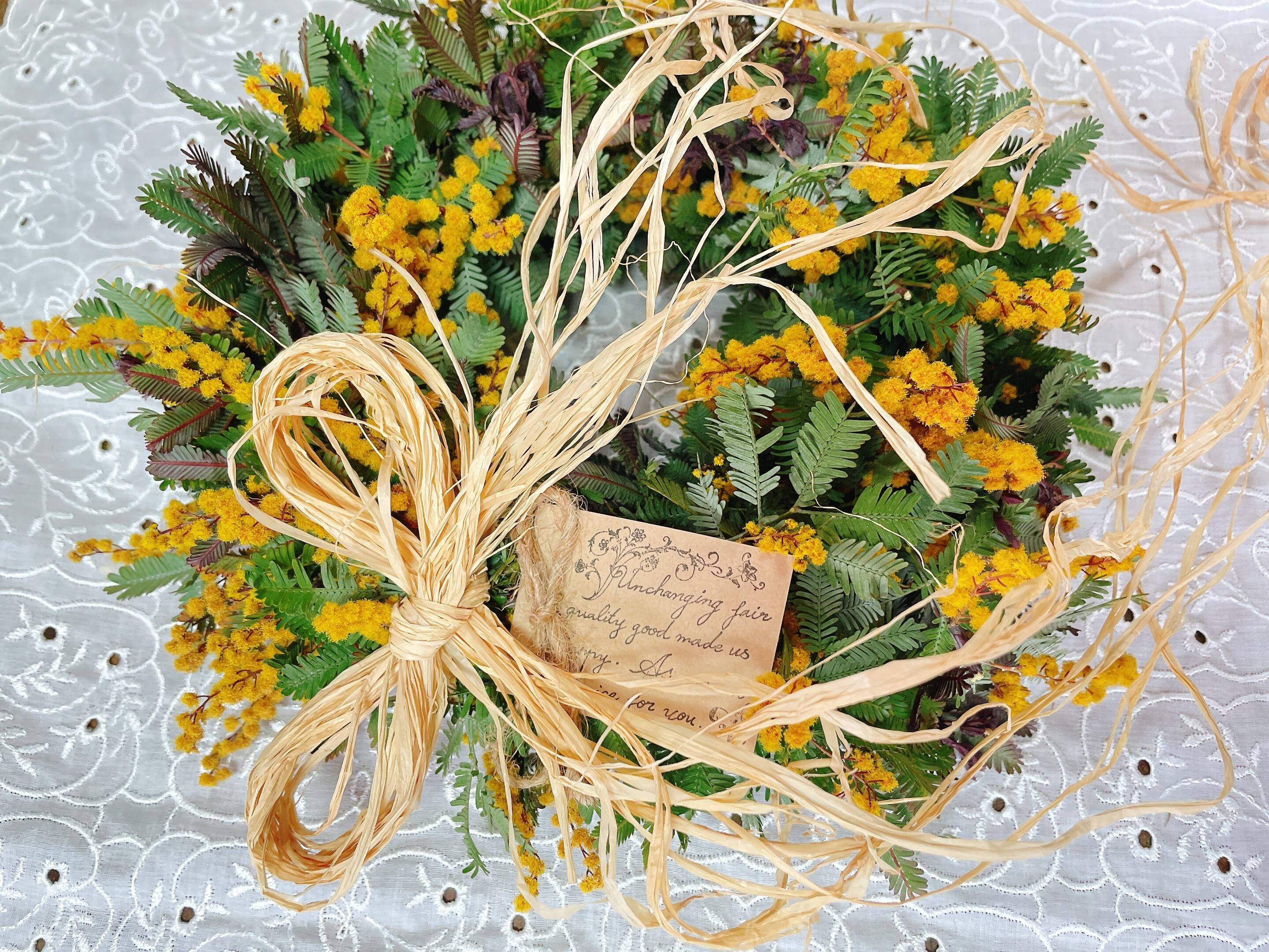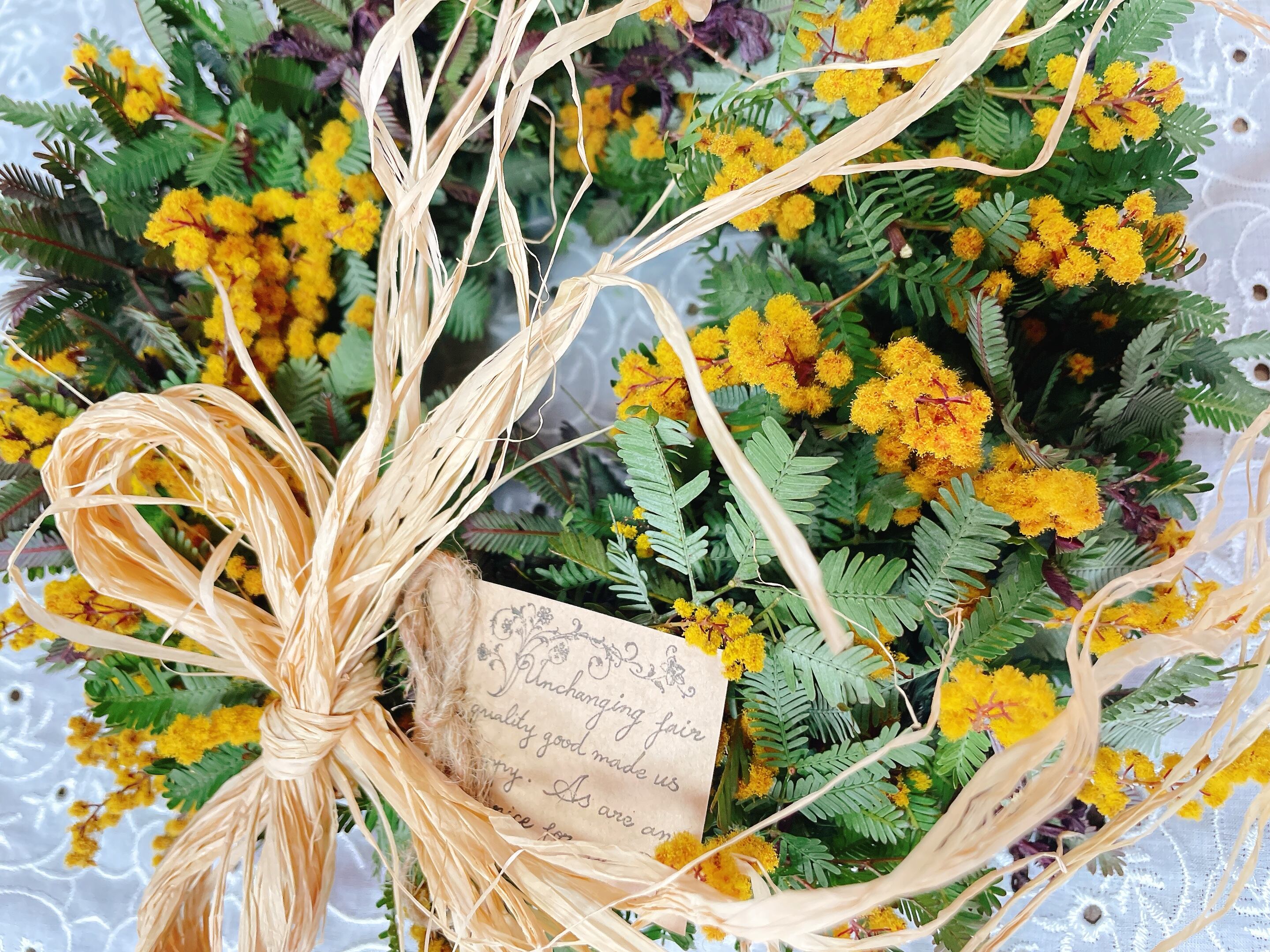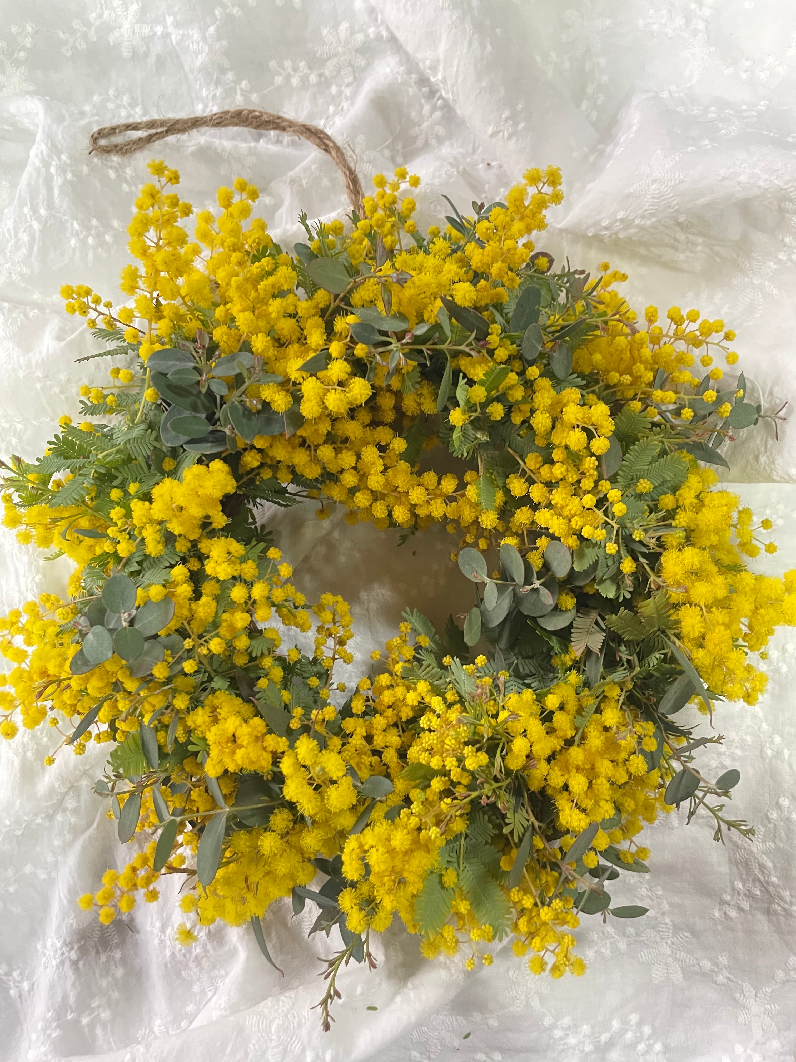 特別な空間づくりのために、このミモザ ハーフリース 23センチをぜひお求めください!心を込めてお届けするこの一品で、新しい季節の訪れを一緒に楽しんでいただければ幸いです。