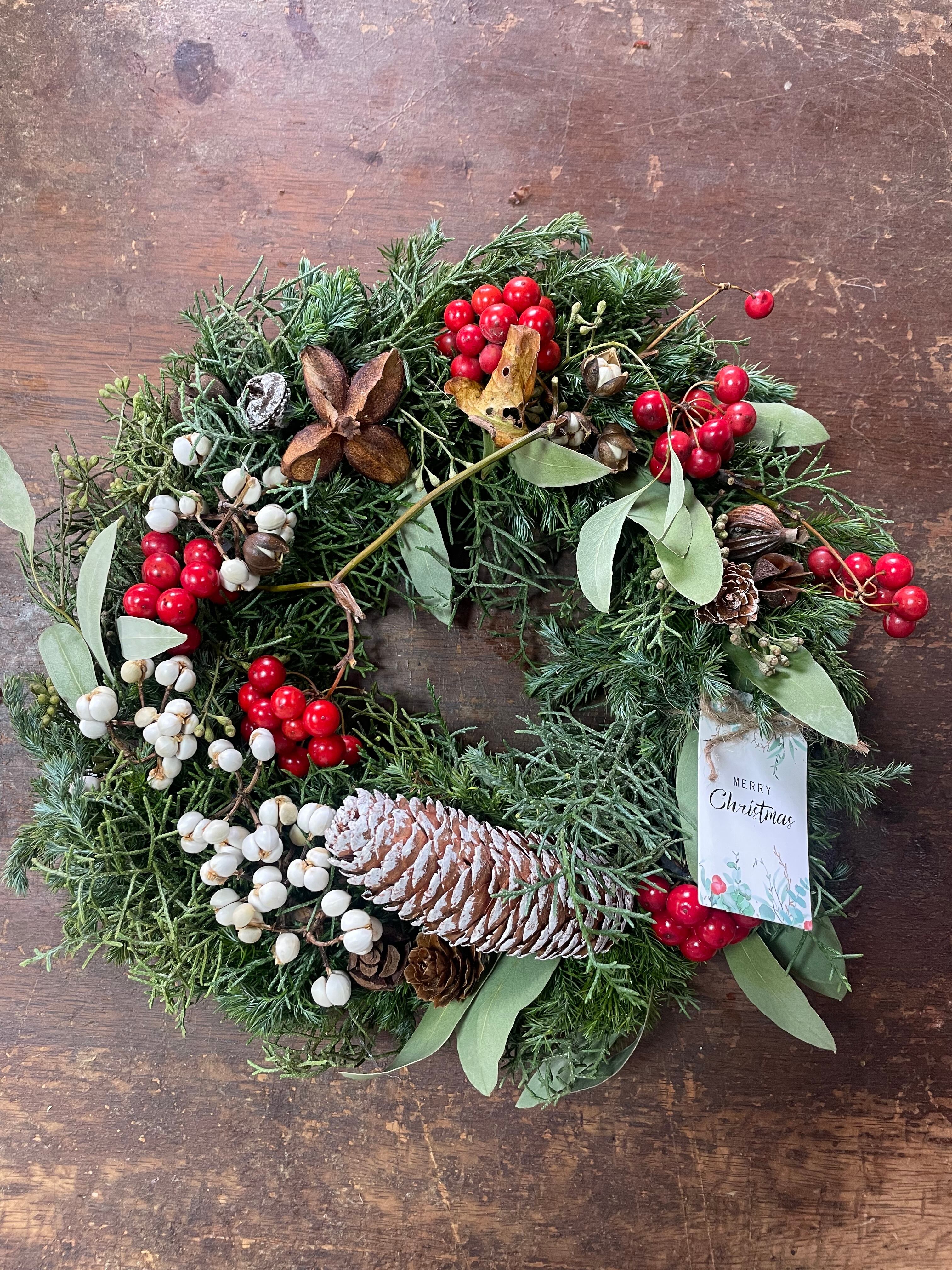 自宅にクリスマスの華やかさを演出する、素敵なクリスマスリースをご紹介します!クリスマスの定番アイテムであるリースは、玄関やリビングを一気に華やかに彩ってくれます。当店のクリスマスリースは、自然の材料を使用して丹精込めて手作りされています。豪華な装飾や鮮やかな色合いが特徴で、見るたびにホリデーシーズンを感じることができます。